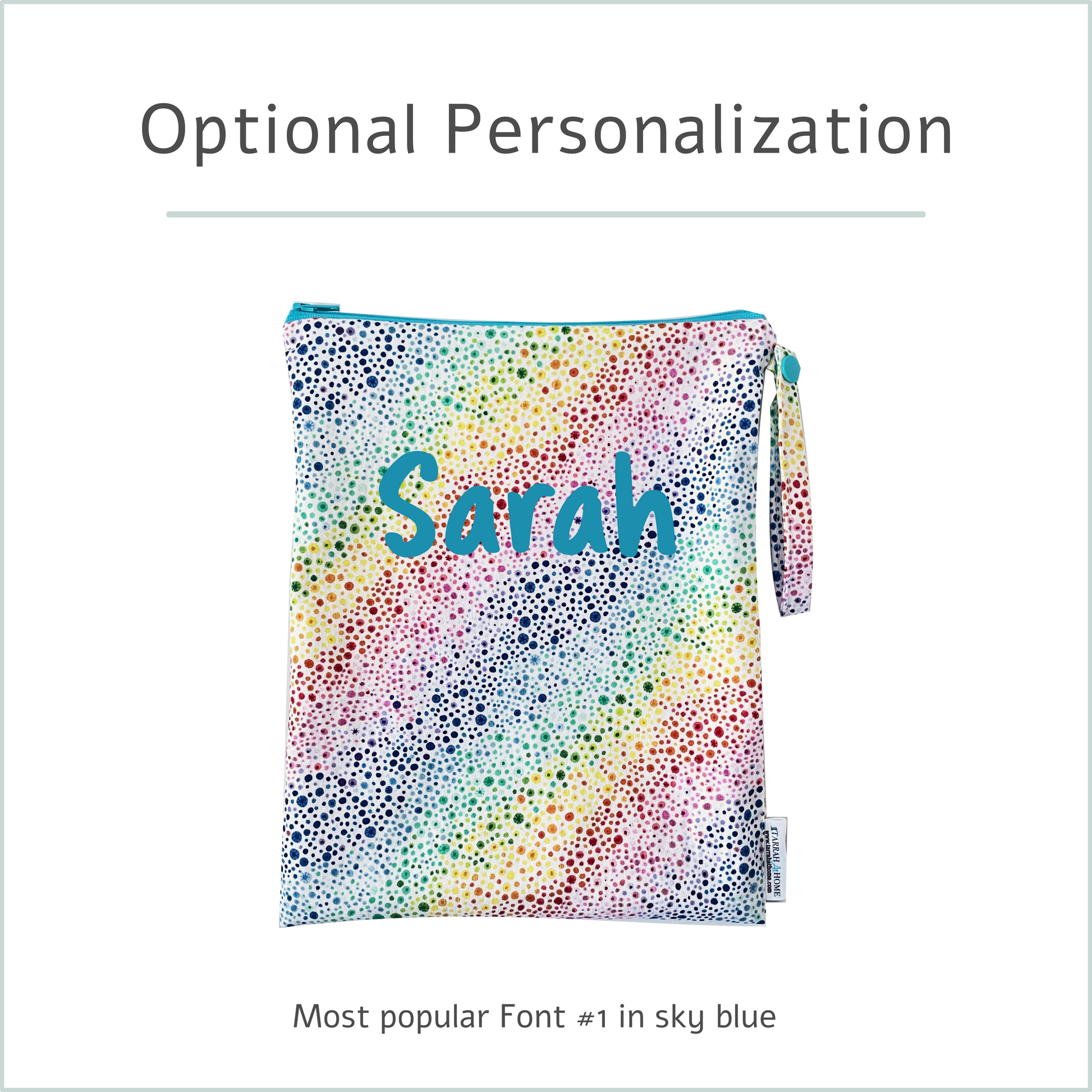 Personalization applies to the wet bag only.
