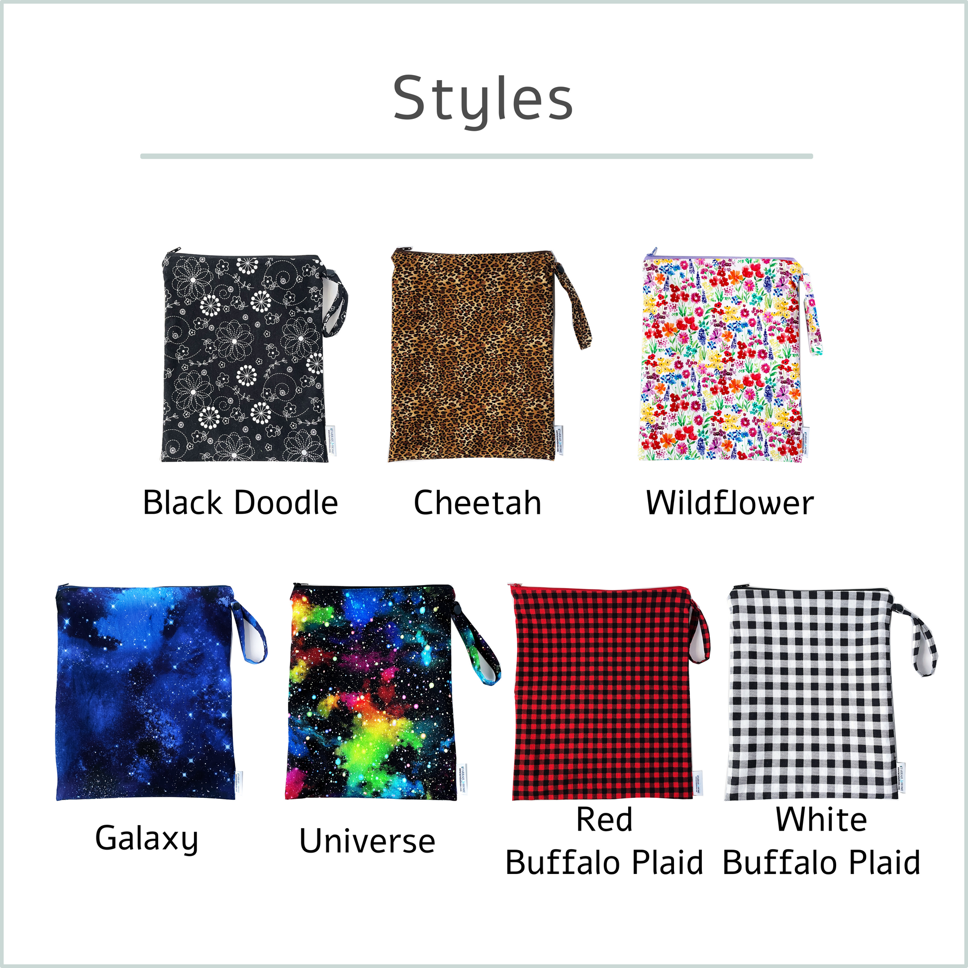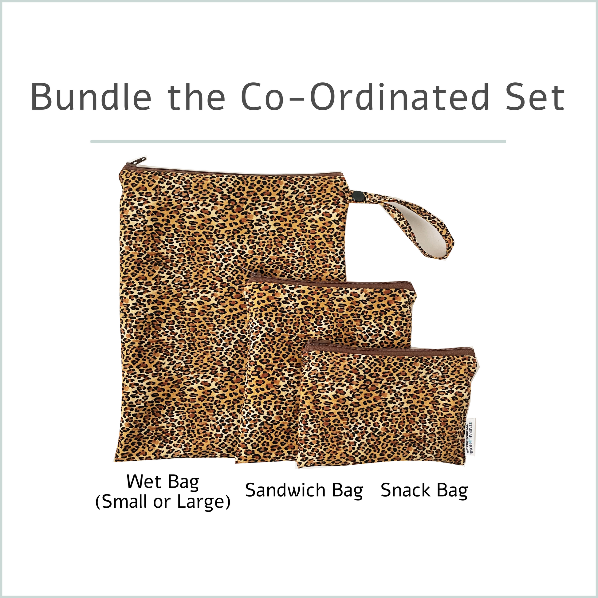 Choose a coordinated bundle that includes 1 wet bag (small or large) plus a matching snack bag and sandwich bag in the same print.